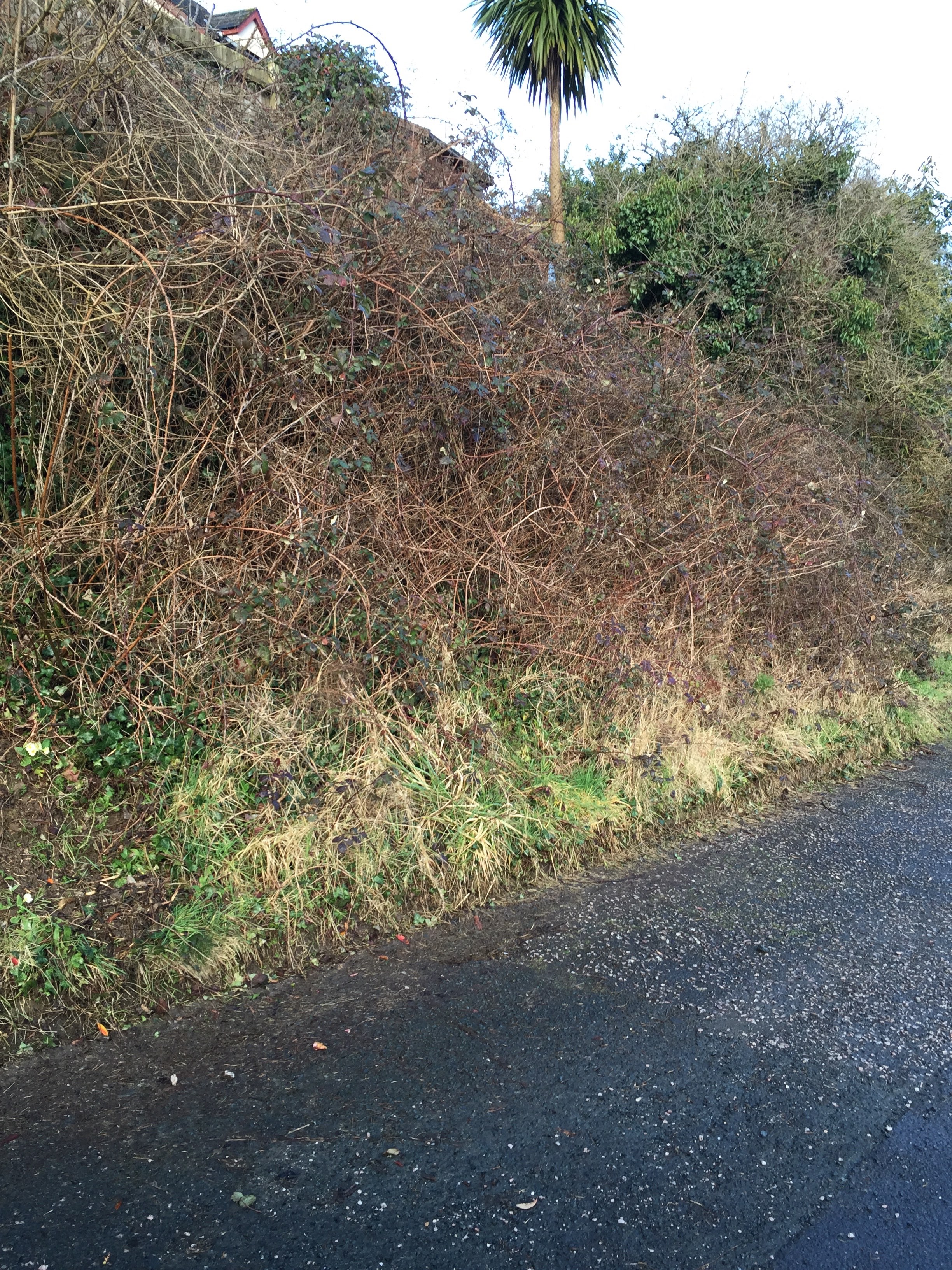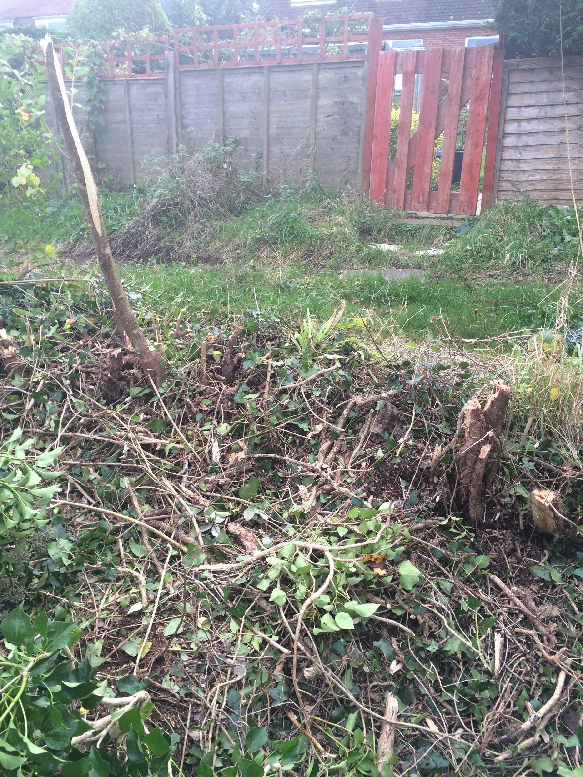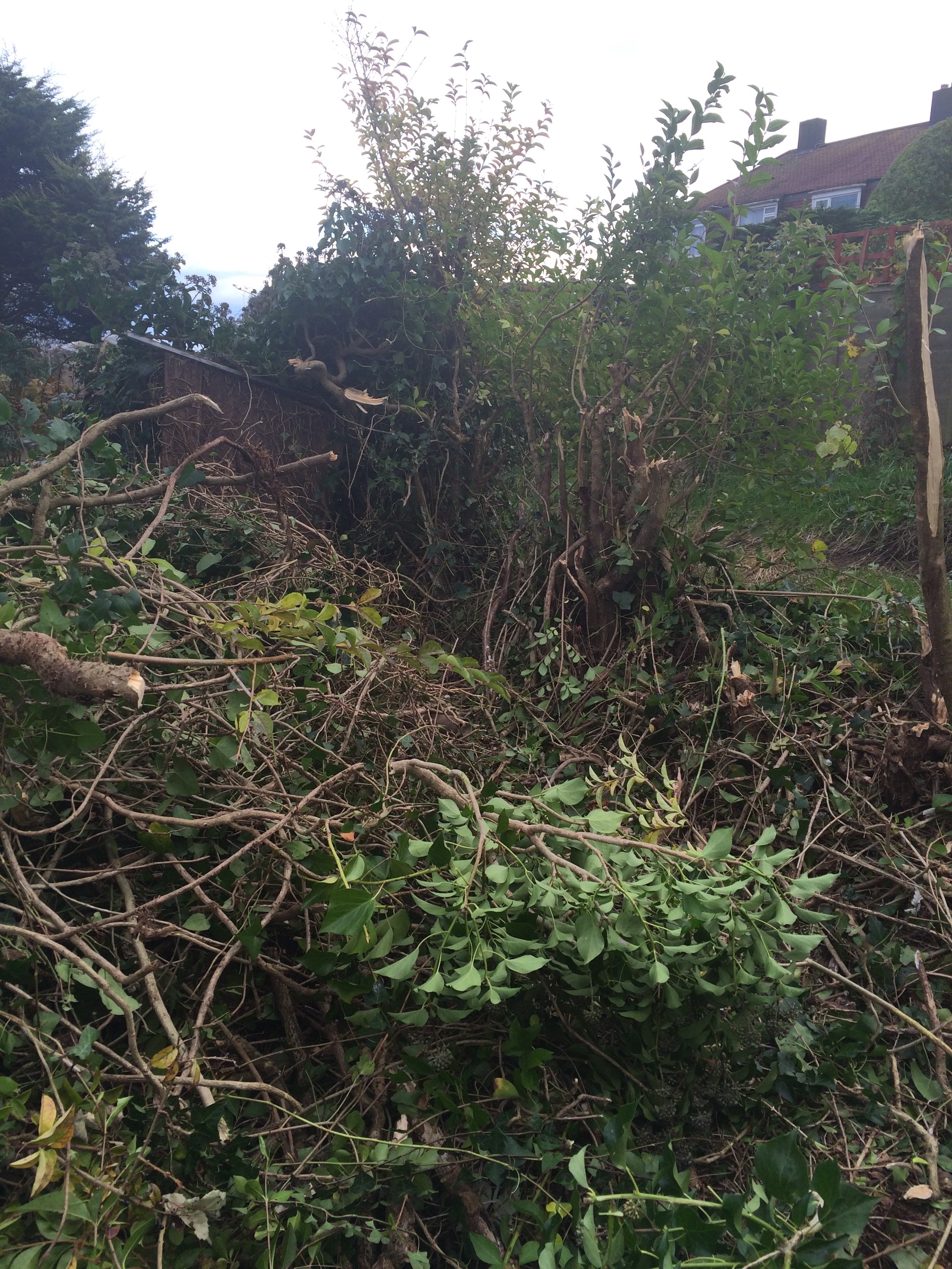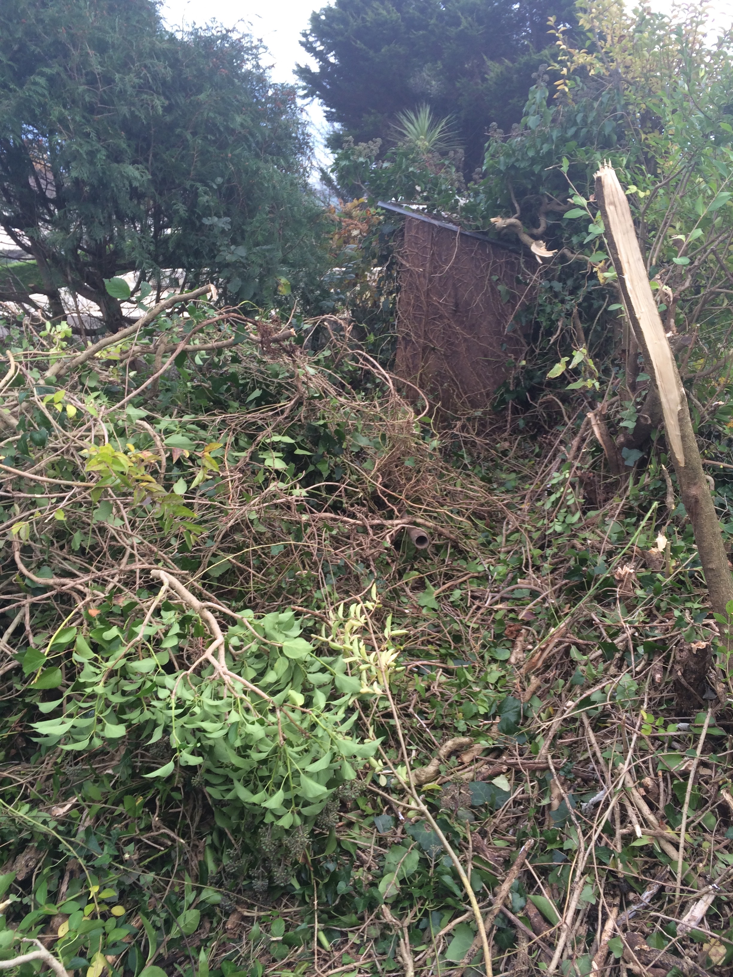 Beginning of clearance for a fence, clearing all the ivy and small trees.